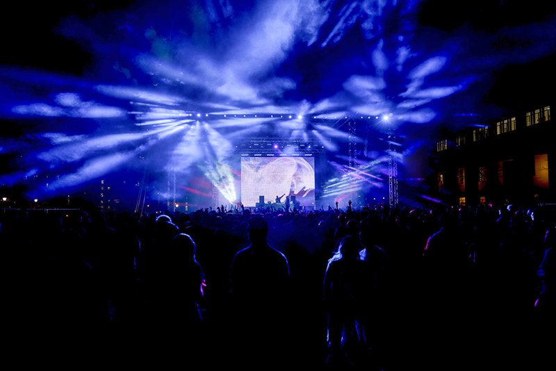 This was Carnegie Mellon's first outdoor concert in several years. The concert took place on the center of CMU's campus on an outdoor festival stage. Video was programmed with a grandMA2 console and a PRG mBox and busked live. Lighting and production design by Sam Molitoriss. Sound Design by Scott MacDonald. Photos courtesy of Noah Hull.